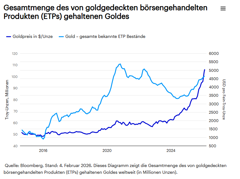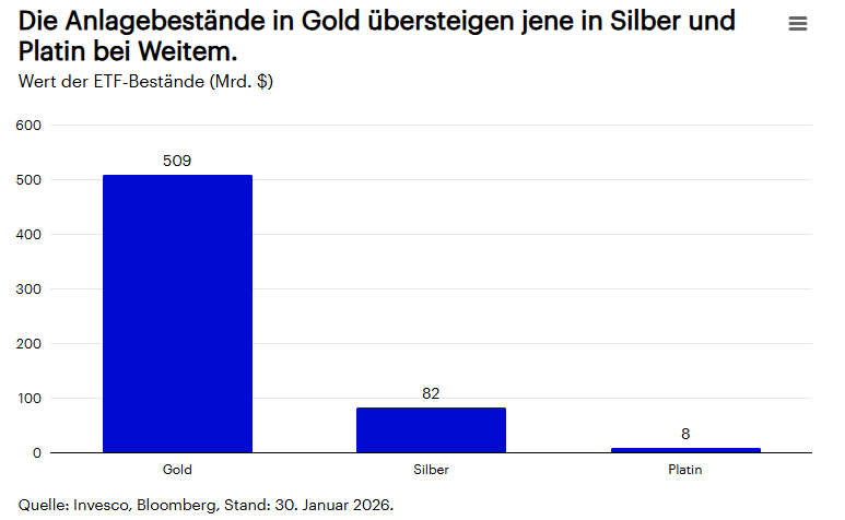- Neuigkeiten von der Fed und Aufschwung des US-Dollars. Die Schwäche von Gold und Silber Ende Januar ergab sich teilweise als Reaktion auf die Nachricht, dass Präsident Trump Kevin Warsh und nicht Rick Rieder zum Vorsitzenden der US-Notenbank Fed ernennen wird. Warsh gilt als etwas restriktiver. Auch wenn die Beziehung zwischen Zinssätzen und Gold sich in den letzten Jahren abgeschwächt hat, ist sie noch immer vorhanden. Diese wurde weiter verstärkt, da die Erträge von Microsoft den Markt enttäuschten und zu einer Schwäche bei Aktien führten. Diese beiden Neuigkeiten führten dazu, dass der US-Dollar einen Aufschwung erlebte und einige Anleger den liquideren Teil ihres Portfolios einschließlich der Positionen in Edelmetallen verkauften.